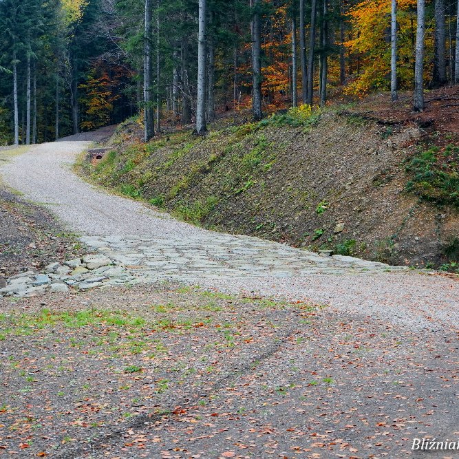 Parking: Niewielka zatoka na poboczu przed wejściem do lasu, GPS: 49°49’42.2″N 19°15’15.4″E