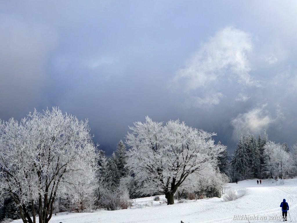 Ruszamy w Beskid Mały – tym razem wybór padł na Leskowiec, na który ruszamy z Rzyk Jagódek. Dojeżdżamy do tej części miejscowości Rzyki, gdzie szukamy miejsca na prywatnych parkingach – nie ma z tym większego problemu. Jest też parking bezpłatny przy wejściu na szlak na kilka samochodów, jednakże dostępny tylko w dni ustawowo wolne od pracy, jak głosi tamtejszy znak. Do wyboru mamy dwa szlaki: czarny oraz Szlak Białych Serc. Ten pierwszy jest krótszy i bardziej stromy, wybieramy go na wyjście w górę, tym drugim będziemy wracać w dół.